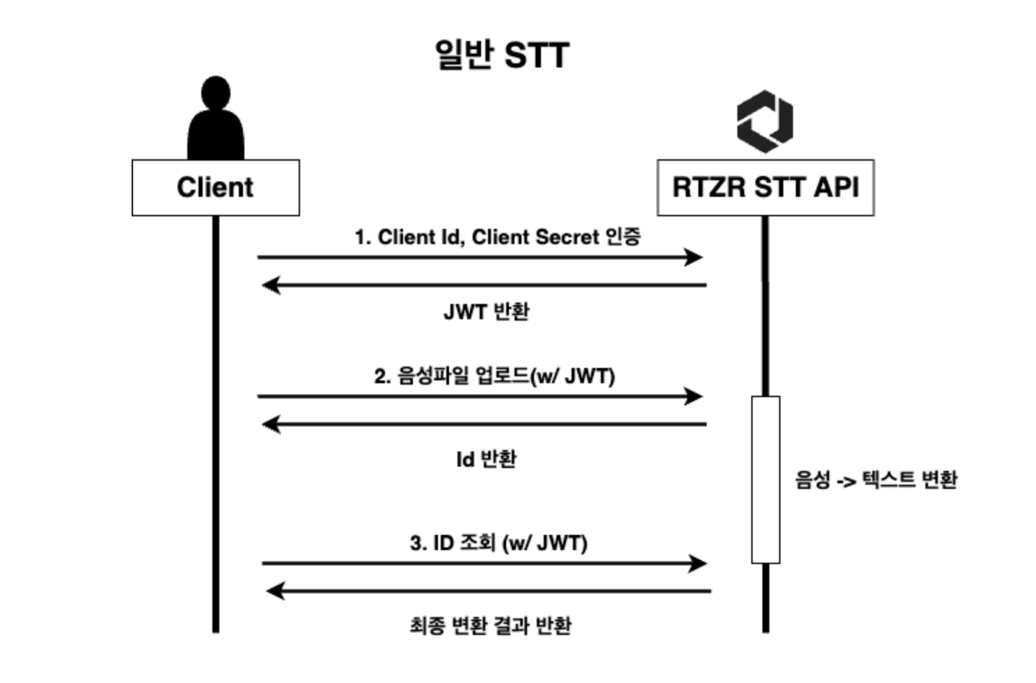리턴제로의 일반 STT API는 다음과 같은 순서로 진행 됩니다.