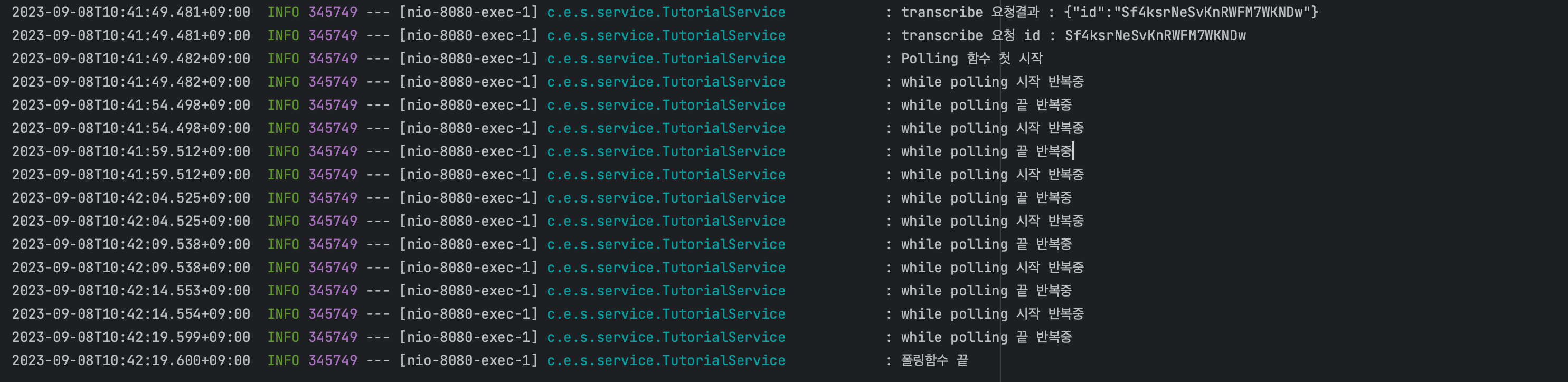 - 결과 log (아래와 같이 나오면 정상적으로 Polling 을 진행한 것입니다)