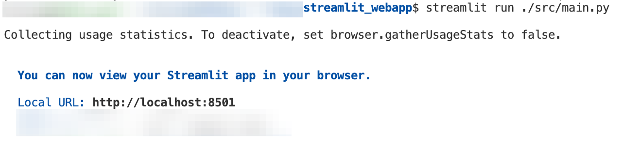 streamlit run ./src/main.py- 터미널 환경에서 위 명령어를 실행하면 아래와 같은 화면이 보입니다.